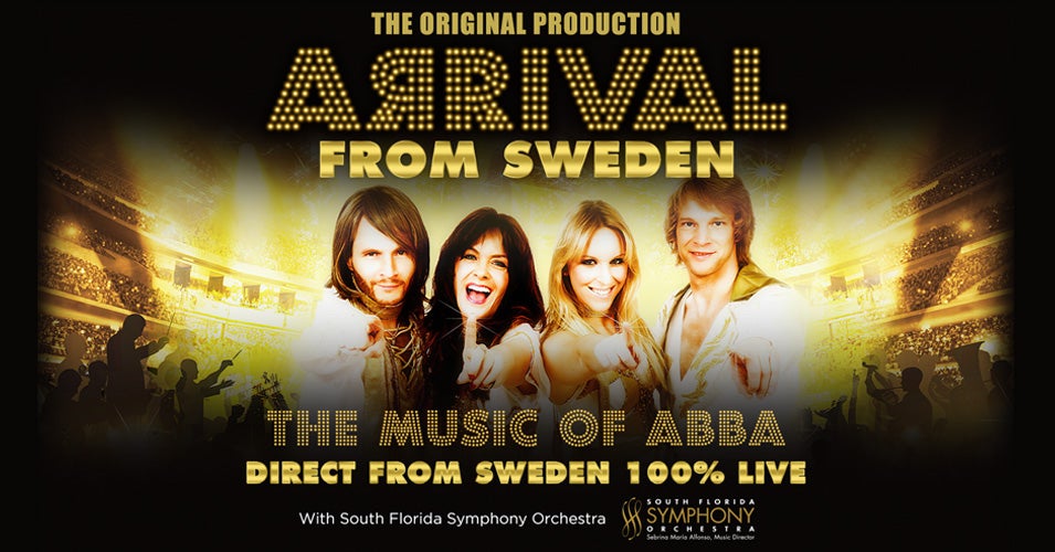 Experience the Swedish group ABBA's timeless hits with ARRIVAL from Sweden - The Music of ABBA – the world's greatest ABBA show. With 30 years of global success, this 10-12-piece band delivers an unforgettable live show of hits like "Dancing Queen," "Mamma Mia," and "Waterloo" with astonishing accuracy and dazzling costumes. Celebrated as the closest you can get to ABBA by the ABBA fan club and approved by ABBA and Universal; this is the truest ABBA experience you'll ever witness.ARRIVAL from Sweden will be joined by South Florida Symphony Orchestra for what promises to be an unforgettable performance!