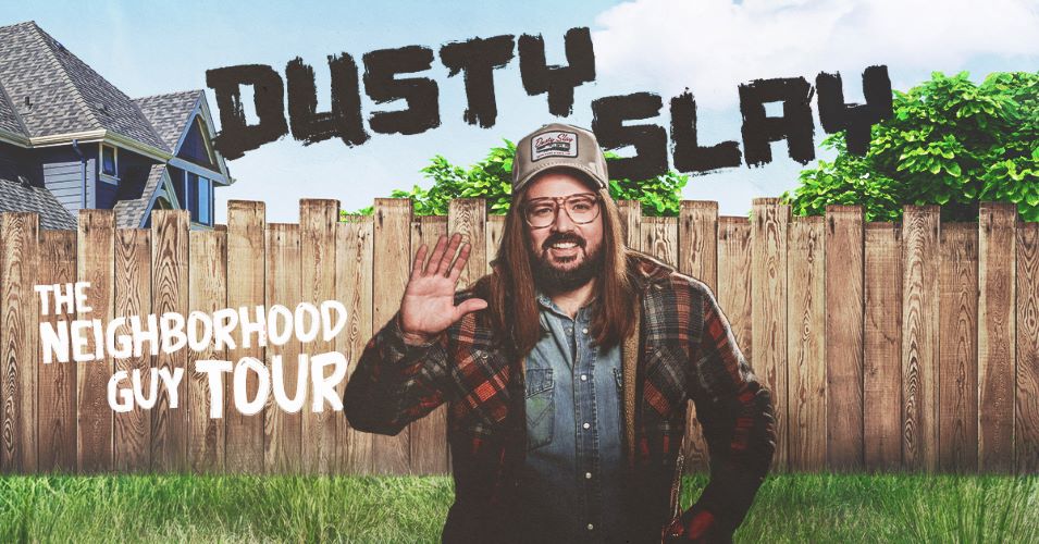 Dusty Slay is a Nashville-based comedian with a one-of-a- kind style that blends laid-back delivery, a southern drawl, and razor-sharp storytelling. Growing up in a trailer park in Opelika, Alabama, gave him plenty of material and his blue-collar humor has since connected with audiences nationwide. Slay made history as the youngest comedian to perform at the Grand Ole Opry and has been featured on The Tonight Show Starring Jimmy Fallon, Jimmy Kimmel Live!, Comedy Central, and Netflix's The Standups. In 2024, he released his first Netflix special, Workin' Man, further cementing his reputation as one of comedy's most relatable voices. With his signature trucker hat, long hair, and knack for finding the funny in everyday struggles, Dusty Slay continues to bring his unique brand of optimism and wit to stages across the country.