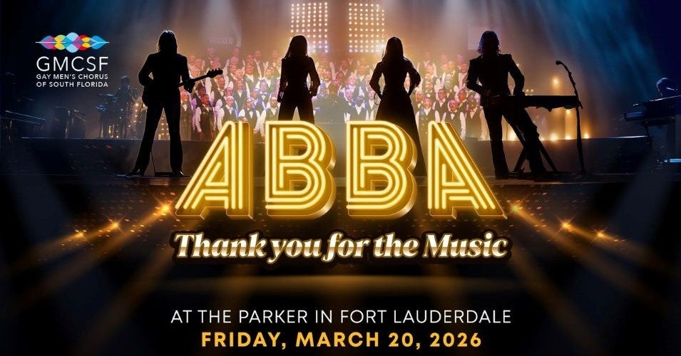 When life tries to dim your sparkle, we say—thank you for the music... and the platform shoes. Sequins? Check. Bell-bottoms? Optional but encouraged. This spring, the Gay Men's Chorus of South Florida presents ABBA: Thank You For The Music, which takes you on a joyride through ABBA's greatest hits with a chorus full of disco dreams. It's ABBAsolutely fabulous! Get ready to dance, sing, and celebrate the queer anthems that defined a generation—"Dancing Queen," "Gimme! Gimme! Gimme! (A Man After Midnight)," and many more.