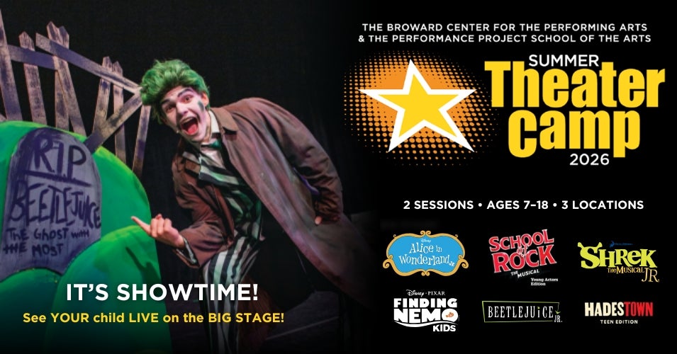 The Broward Center for the Performing Arts and The Performance Project School of the Arts, welcome you to Summer Theater Camp 2026! Two sessions of camp are available at Broward Center in Fort Lauderdale, Aventura Arts & Cultural Center in Aventura and the Rose & Alfred Miniaci Performing Arts Center at Nova Southeastern University in Davie.